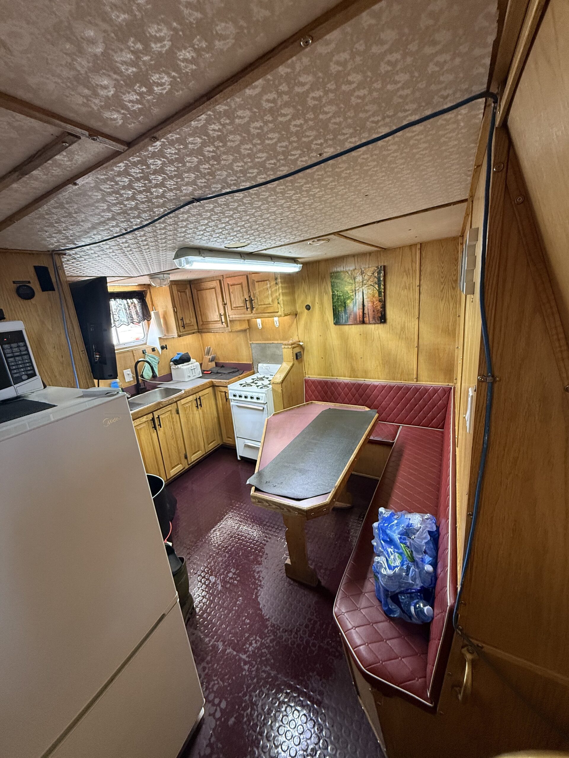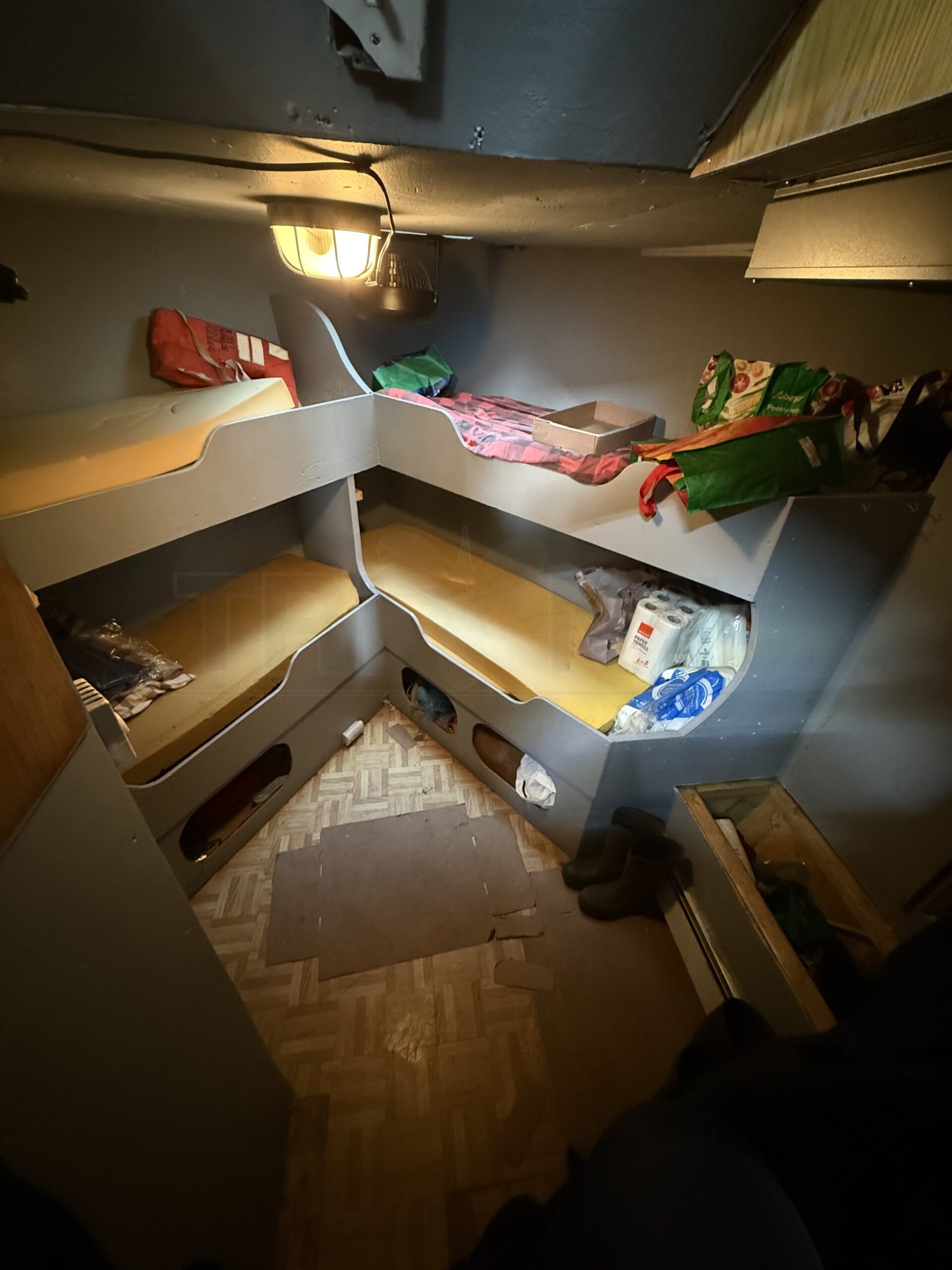 (5) berths (1) cabin Propane stove Galley on deck Washroom Furnace Refrigerator |