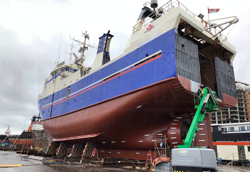 Main Engine: 1740HP, Sulzer 8ASL Diesel Engine Built: 1990 Engine Rebuilt: 2021 Complete overhaul Transmission: Volda ACG 500 (rebuilt 2019) Gear Ratio: 3.68:1 Shaft Size: 9" Propellor: 2600mm in nozzle Steering Type: Hydraulic Bow Thrusters: Yes |