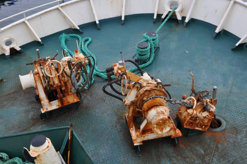 (1) RAPP TWS-7510G/ 3.5-2.0 split trawl winch (2) RAPP GWB-2000 Gilson winches (4) RAPP SWB-12000 sweepline winches (1) RAPP GW-680 cod-end winch (1) RAPP GW-680 out-hauling winch (2) RAPP LWD-100 backstope winches (2) RAPP AW-580 anchor windlass (1) net drum Drums hold approx. (1250) fathoms of 26 mm warp. RAPP autotrawl (2020) 25 ton/day Slush Ice Maker 3X 150 HP Sabroe compressors to run Horizontal Freezers and Fish Hold |