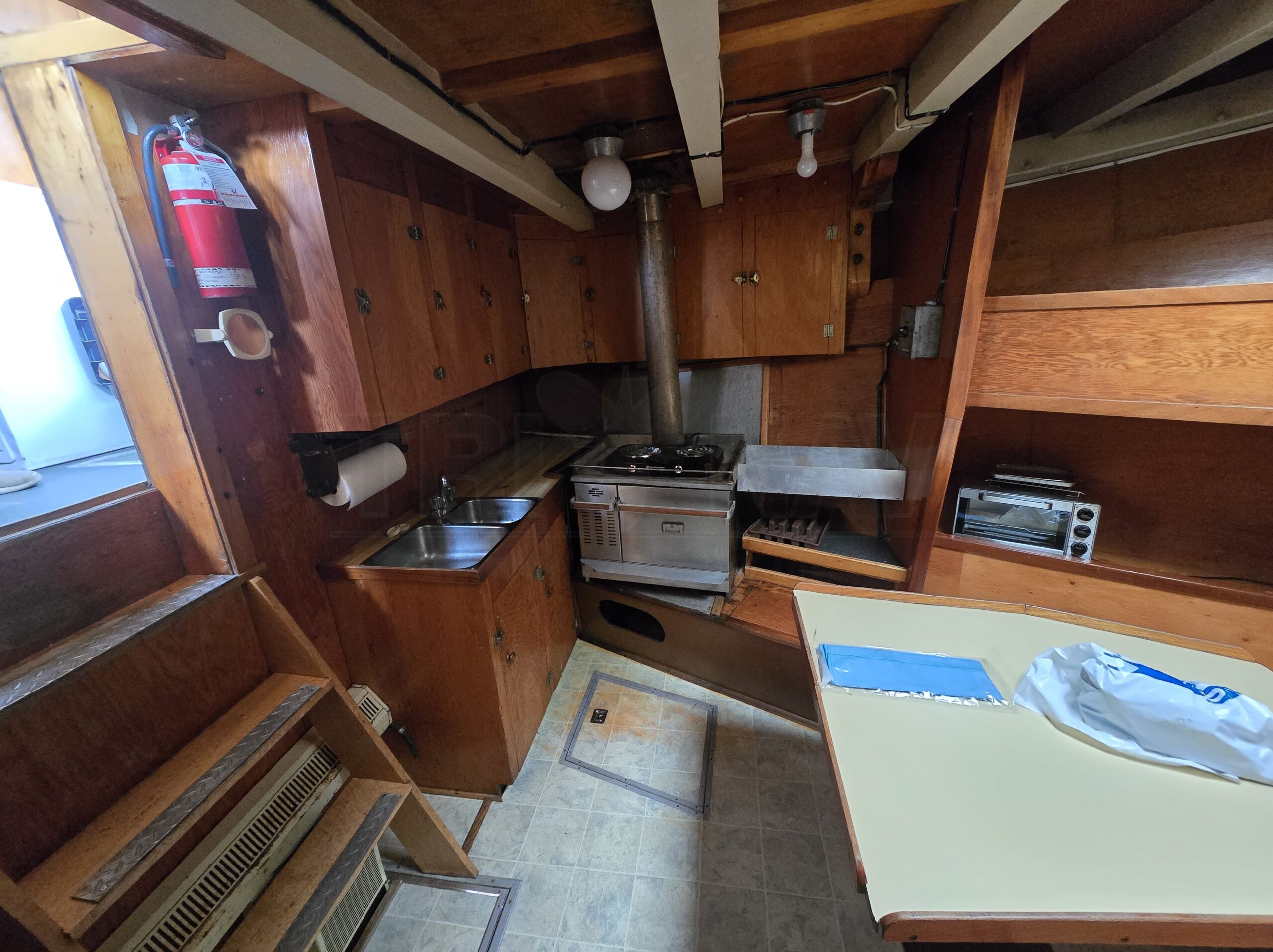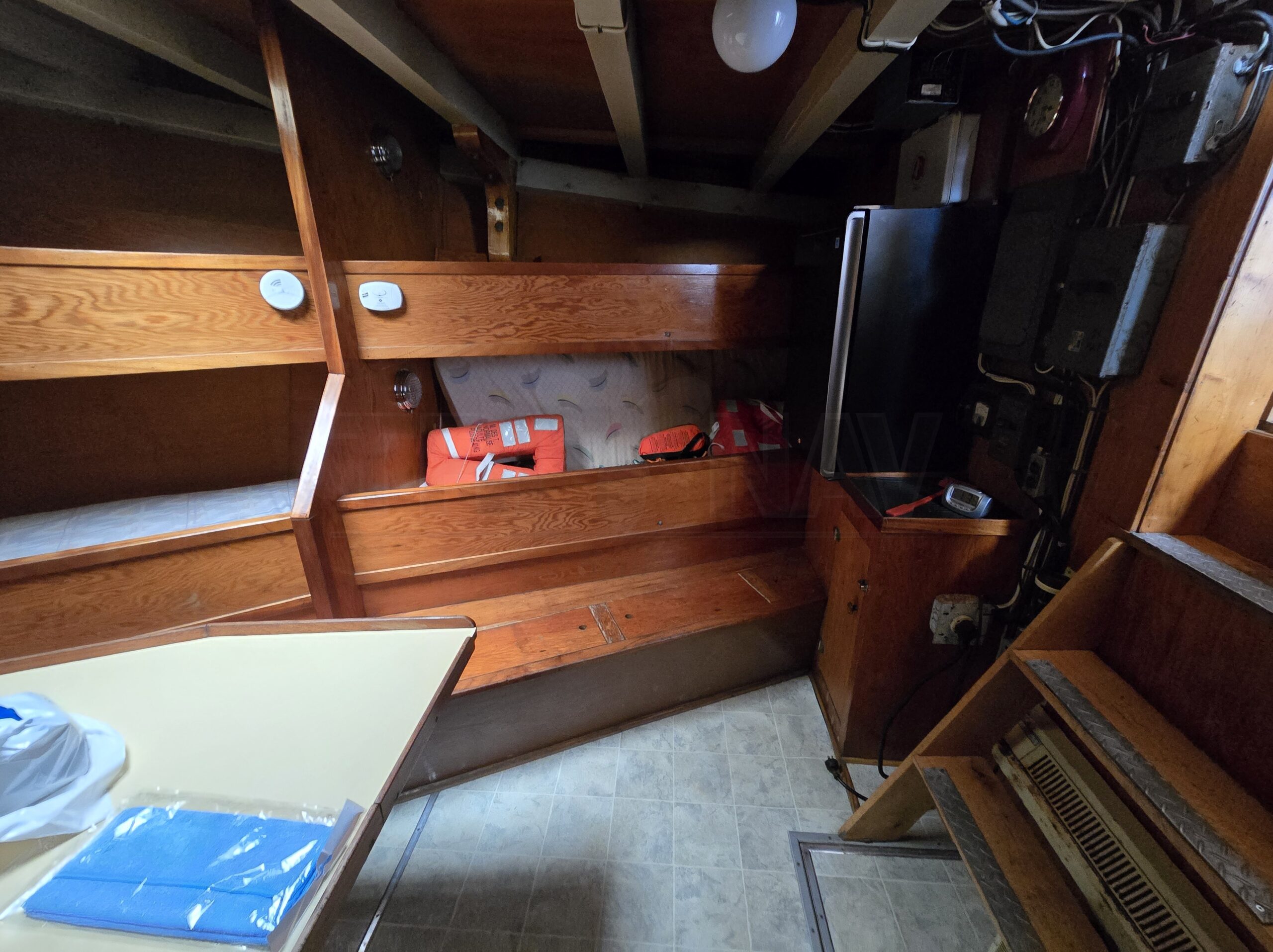 (5) berths Cabin Oil and electric stove Galley on deck Washroom Shower Furnace Refrigerator Microwave Freezer |