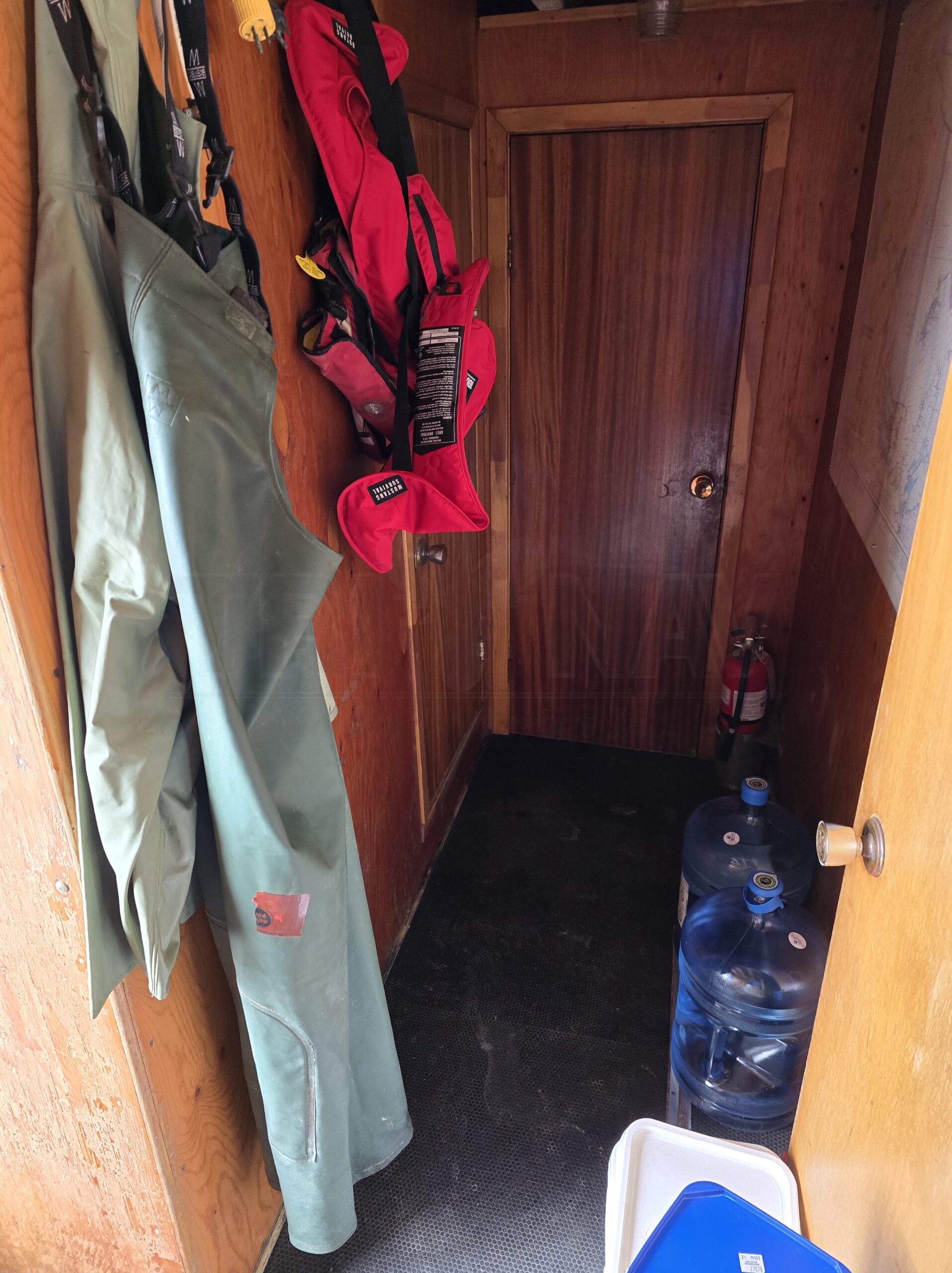 6-person life raft (5) life jackets (2) life rings (1) survival suit (3) ABC fire extinguishers |