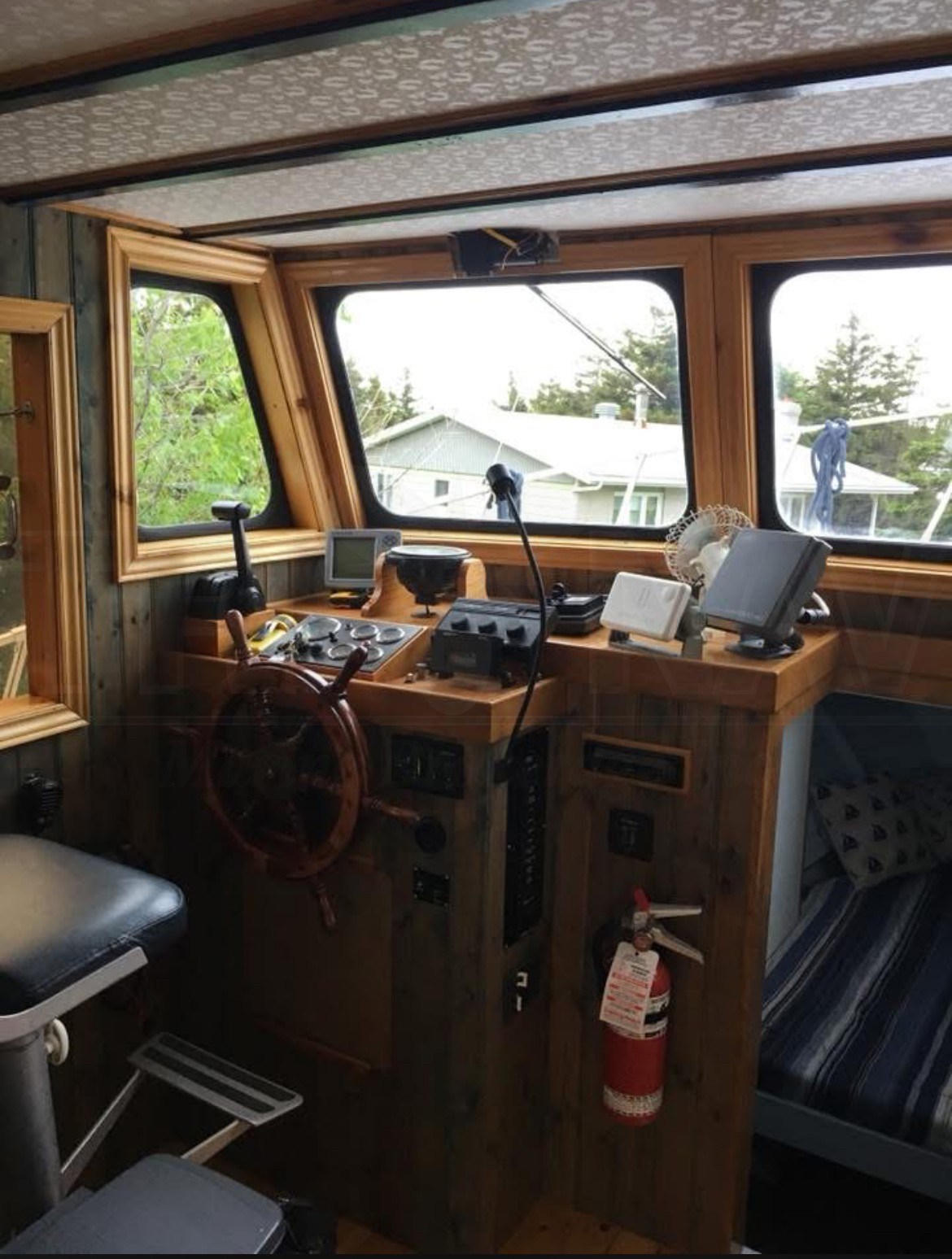 | Electronics | Radar: JRC 1500 Plotter: Standard Horizon CP190I Sounder: ST-40 Raymarine, Eagle Fishmark 320 VHF: Uniden ES-UM525 AutoPilot: Furuno GP-32, Garmin Alarm System: Water (2) sound systems - Sony CDX RW300 & Kenwood Speed log Raymarine ST40 |
