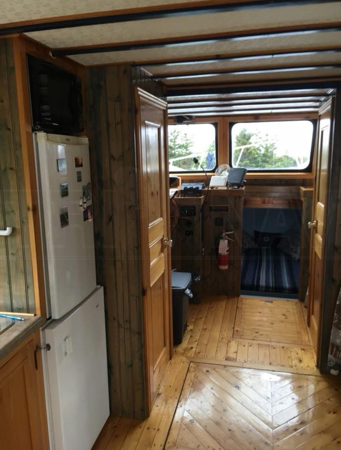 | Accommodations | (2) berths (2) cabins Black water tank log - 106 litres Washroom Refrigerator |