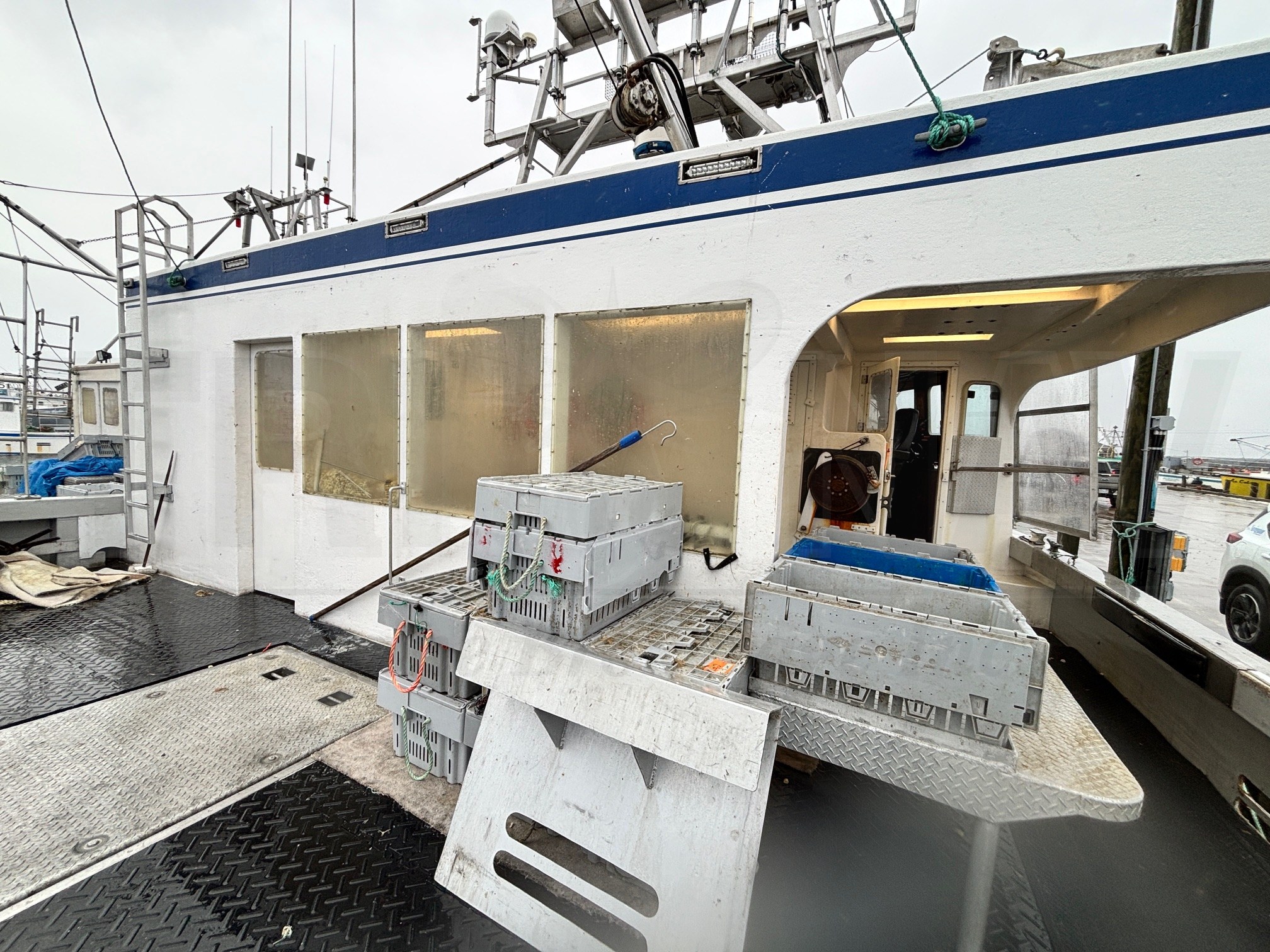 17" Clare Machine Works lobster hauler (2) PL-2 boom winches A-frame Mast Boom (4) live wells (120) crates Bow thruster |