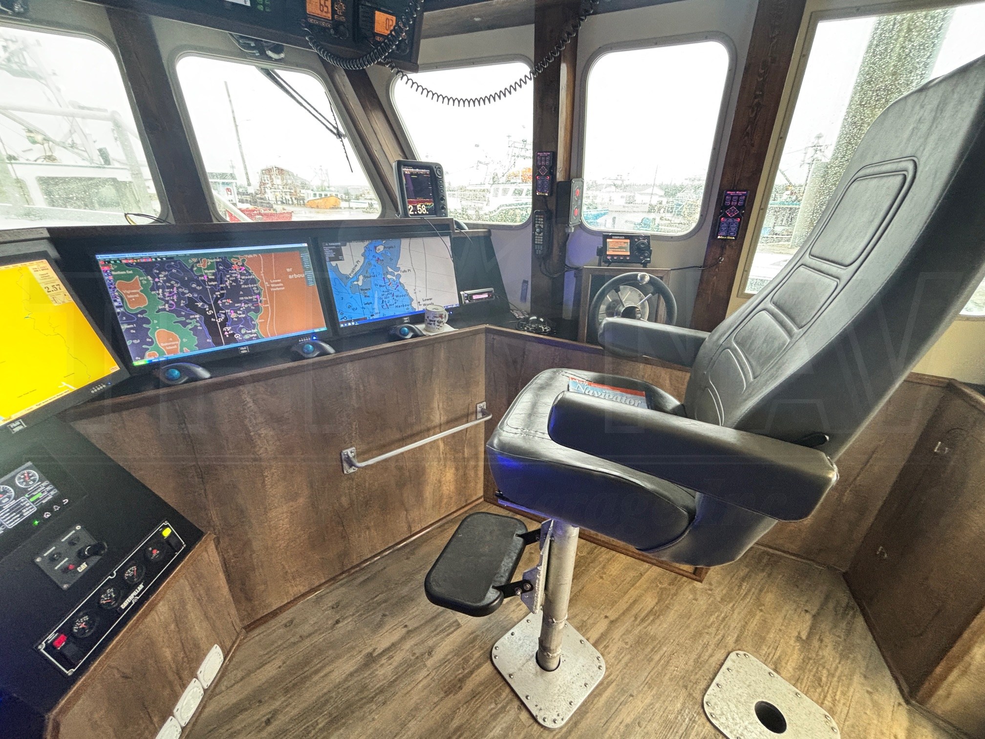 Radar: Furuno, 36 mile Plotter: Olex, TimeZero, Hondex Sounder: Furuno VHF: (2) Icom's AutoPilot: Simrad A2004 GPS: (2) Furuno GP-39 Stereo (5) camera systems Victron Energy |